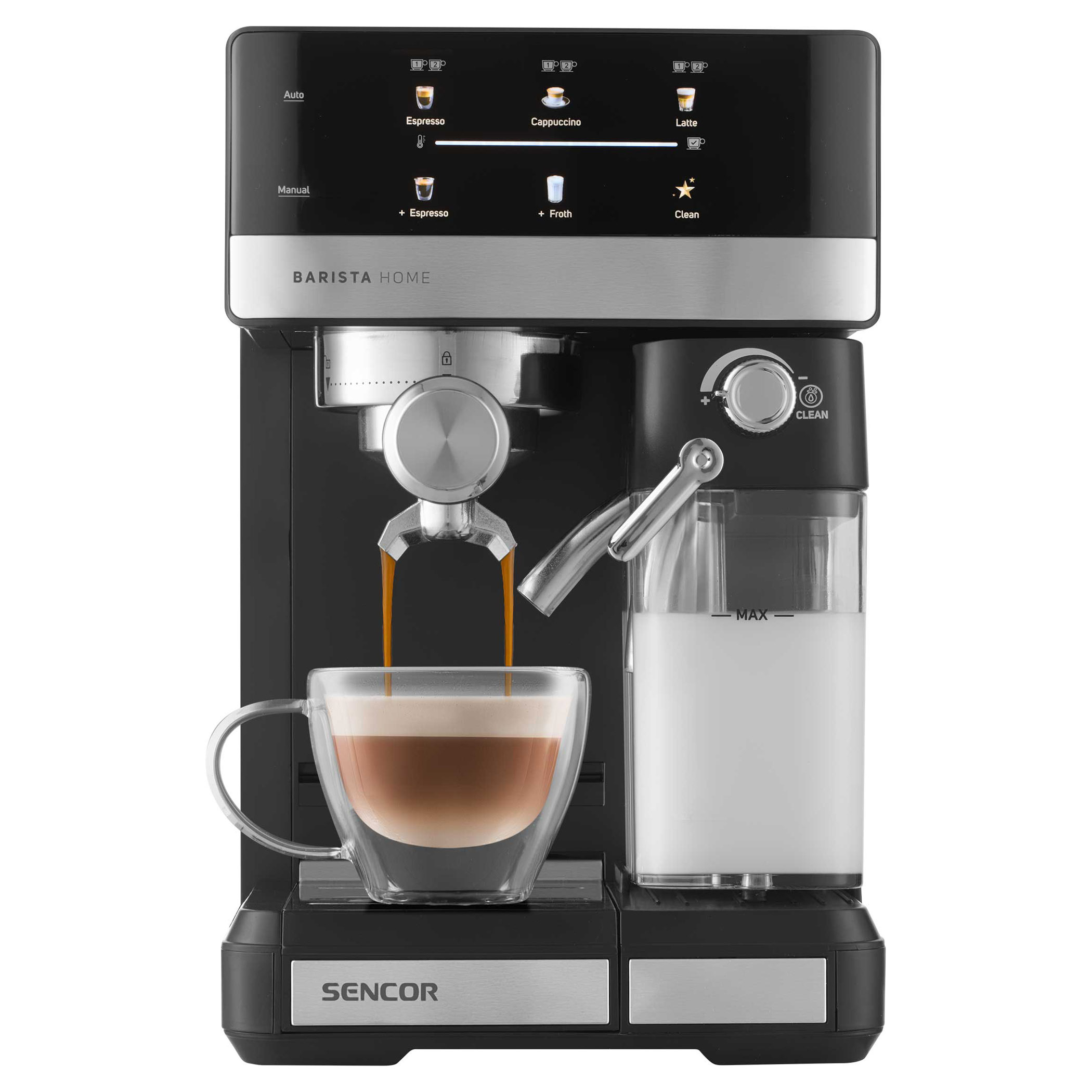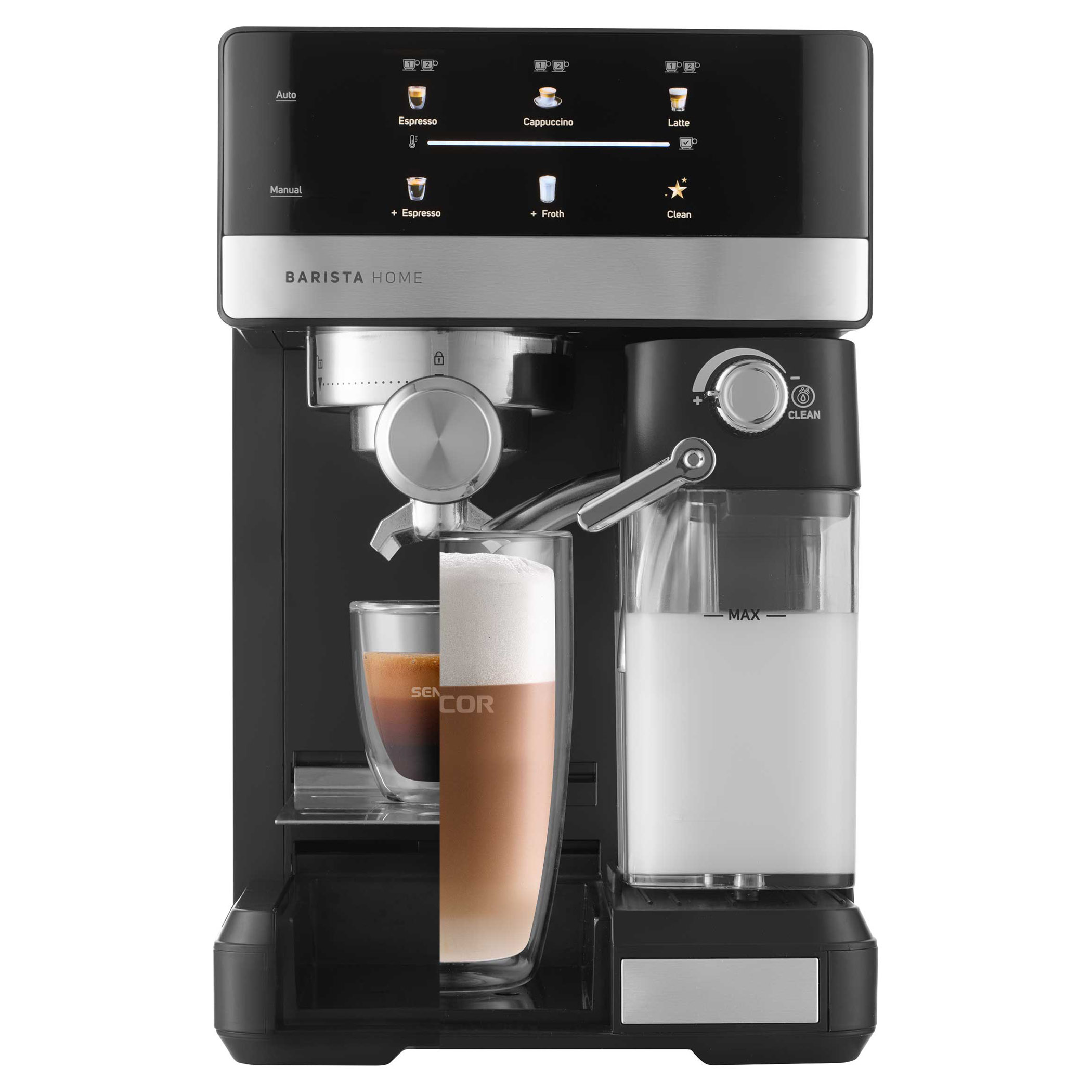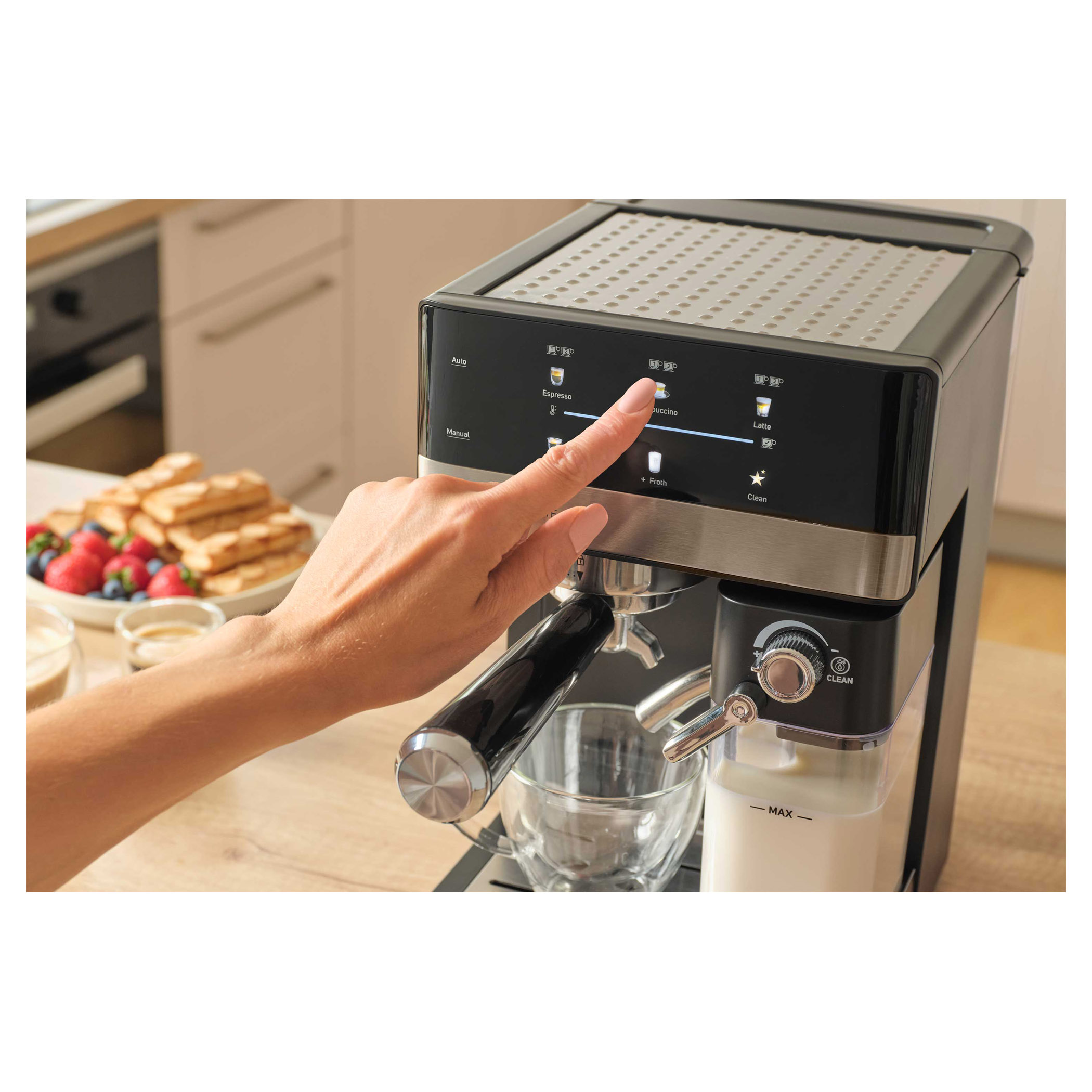 • Automatski sustav za pjenjenje mlijeka s podesivom veličinom pjene• Automatski programi za Cappuccino, Latte ili samo zapjenjeno mlijeko