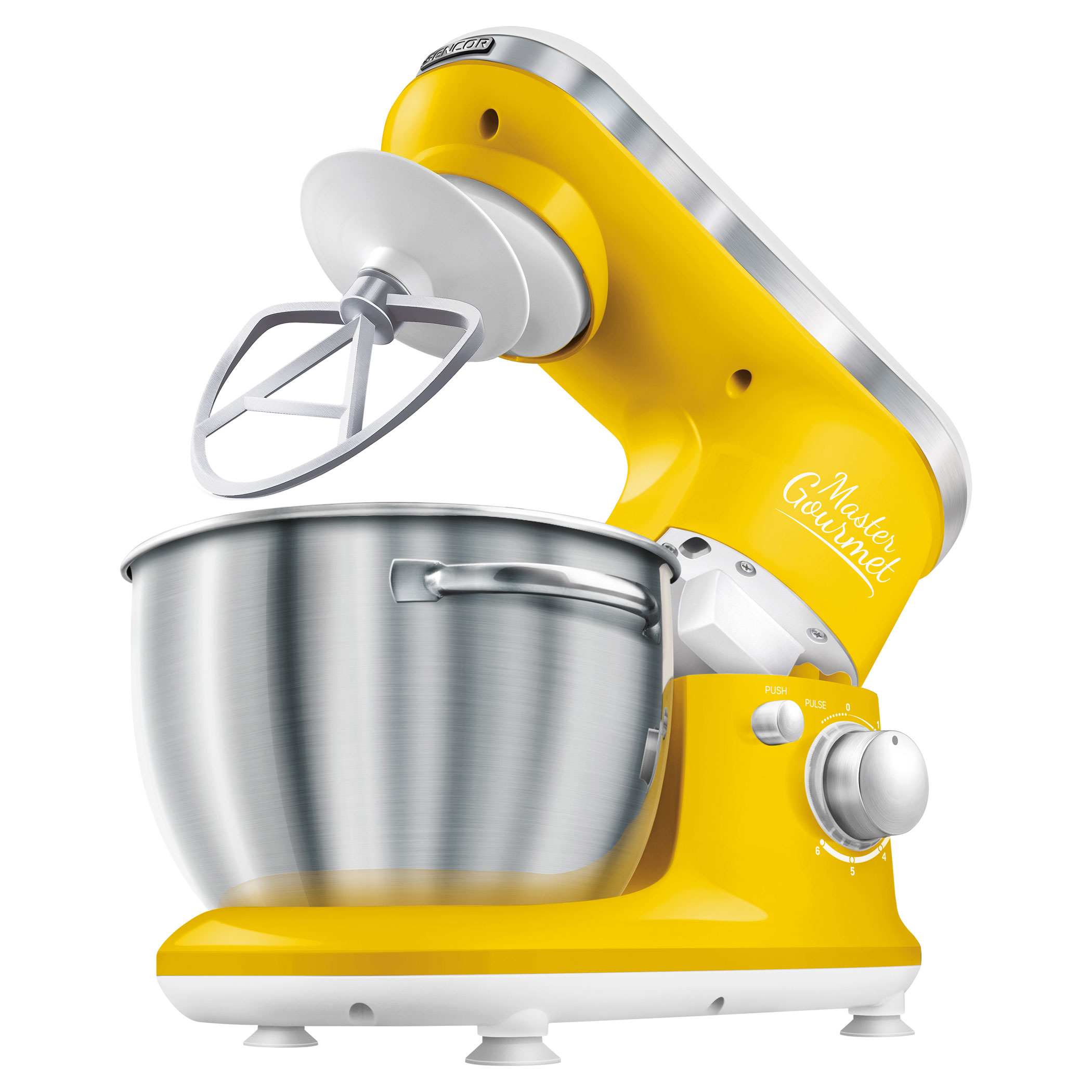 4 zamjenjiva dodatka: kuka za miješenje (za teška i tvrda tijesta s kvascem), nastavak u obliku slova A (za kreme i lagana tijesta bez kvasca), nastavak u obliku balona za tučenje (za tučenje šlaga, bjelanjaka, itd.), zaštita za lijevanje