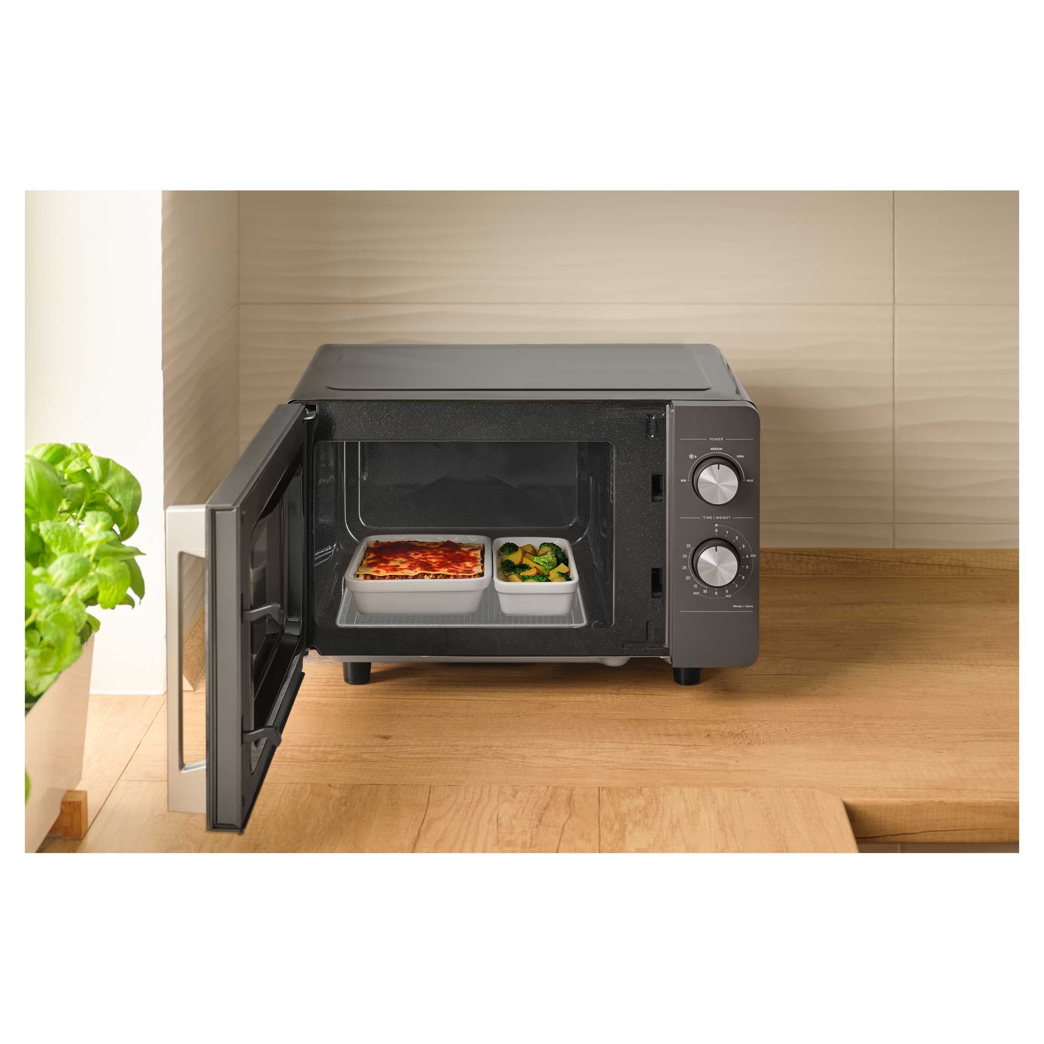 - Kontrolni gumbi – jednostavno podešavanje snage i vremena grijanja/kuhanja.