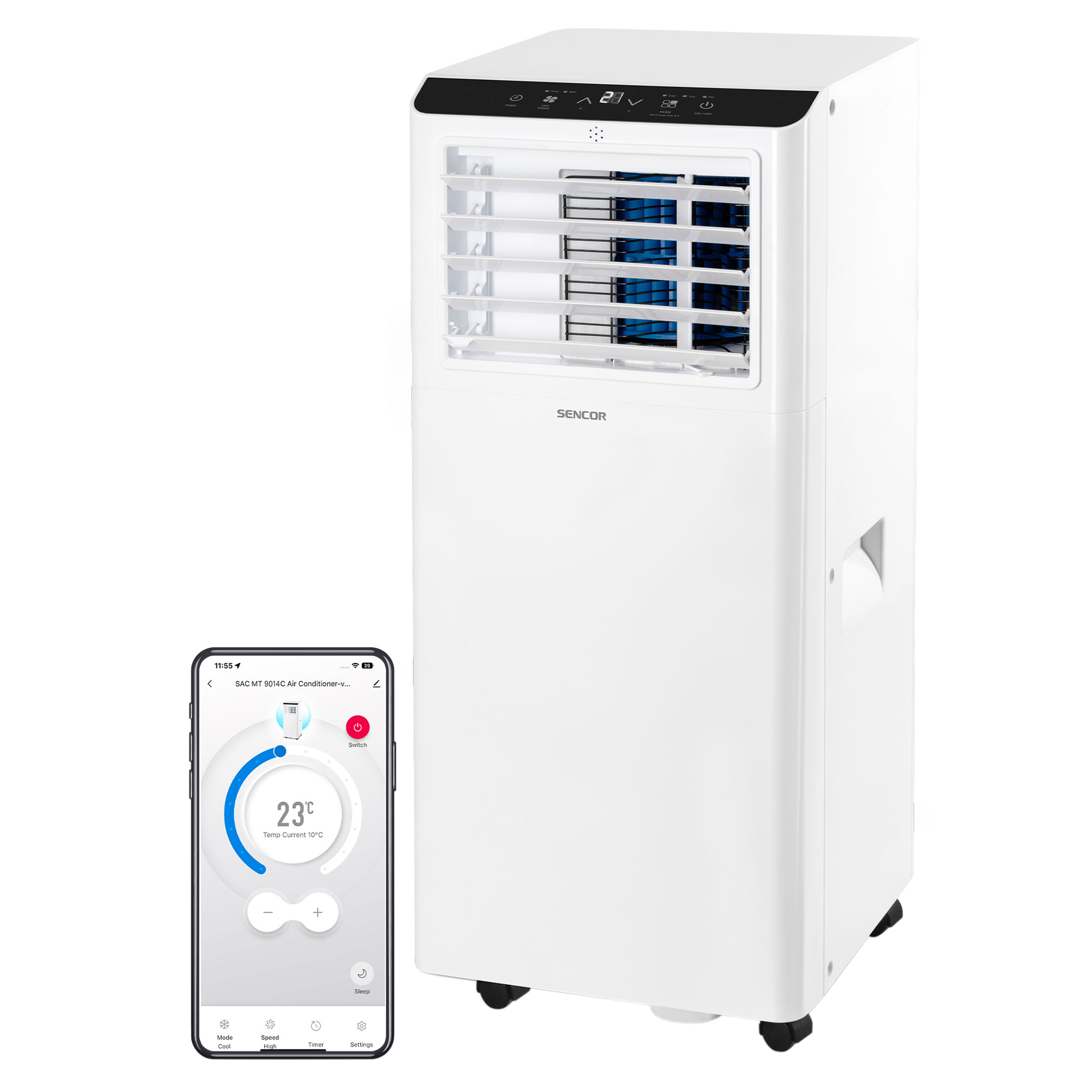 Ovim klimatizacijskim uređajem može se upravljati na 3 načina. Pored klasičnog daljinskog upravljača ili upravljanja putem upravljačke ploče klimatizacijskog uređaja, dodali smo mogućnost upravljanja klimatizacijskim uređajem s gotovo bilo kojeg mjesta koristeći vaš vlastiti pametni telefon i aplikaciju Sencor HOME. Tamo gdje s mobitelom imate pristup internetu, postoji i mogućnost povezivanja s vašom kućnom mrežom i time upravljanje vašim Sencor Wi-Fi klimatizacijskim uređajem. Na taj način može vam biti udobno u vašem domu odmah nakon povrataka s posla ili putovanja. Zahvaljujući Wi-Fi povezivanju, klimatizacijski uređaj će postati dijelom vašem kućne mreže. Pored Wi-Fi, dodali smo i Bluetooth. Bluetooth će se primarno pobrinuti da je prva ugradnja zaista jednostavna i bez problema.Želite li ohladiti radnu sobu tijekom dana i je li klimatizacijski uređaj prikladniji za spavaću sobu tijekom noći? Jednostavno premještanje je zajamčeno pomoću 4 kotačića i integriranog rukohvata.