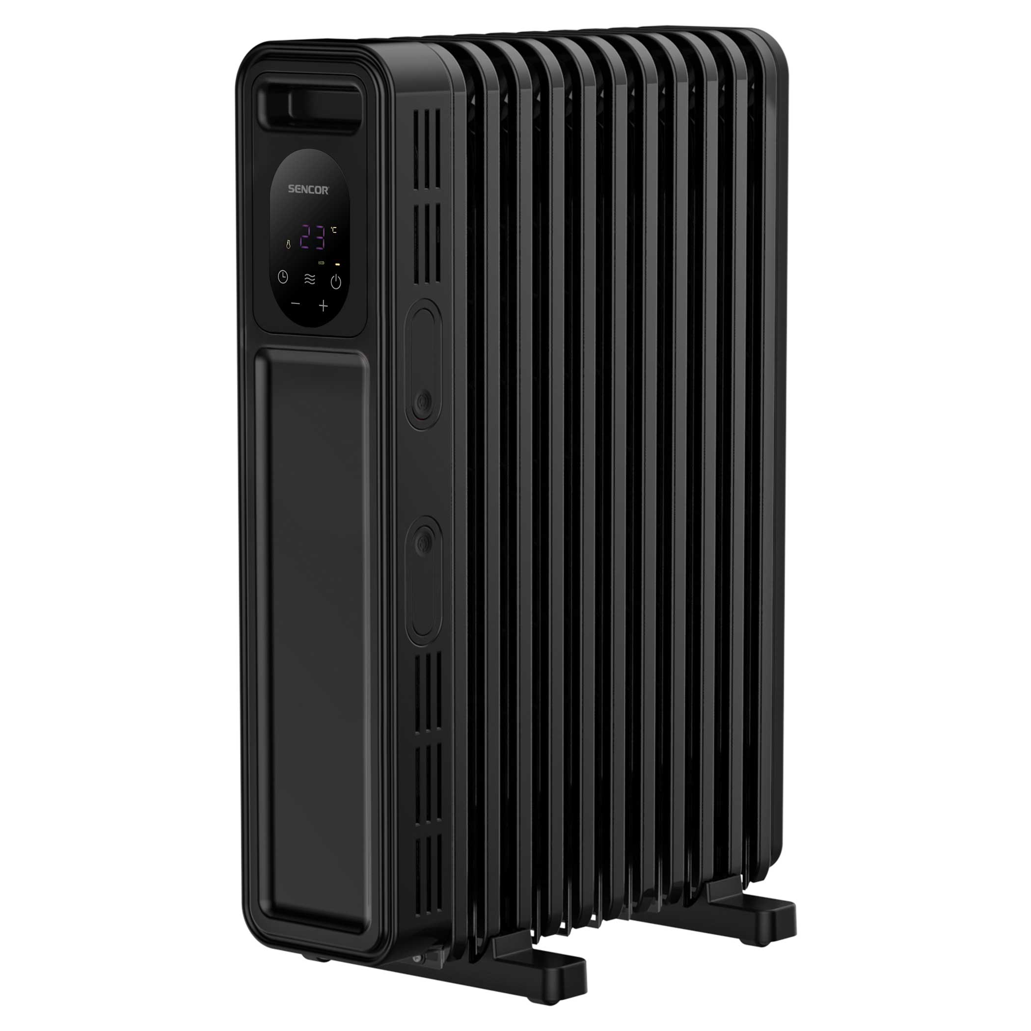 U vikendici, u uredu, u radionici ili u spavaćoj sobi – na bilo kojem mjestu koje je potrebno zagrijati ili utopliti, cijenit ćete bešumni rad, brzo započinjanje snage grijanja i veliku sposobnost akumuliranja SENCOR digitalnih uljnih radijatora s FLAT SHAPE grijaćim elementima. Digitalna upravljačka ploča nudi prikladno postavljanje ciljane temperature u rasponu od 5 do 35 °C. Pri ruci vam je i daljinski upravljač. Digitalni uljni radijatori su dostupni u dvije verzije, s 11 ili 13 grijaćih rebara.