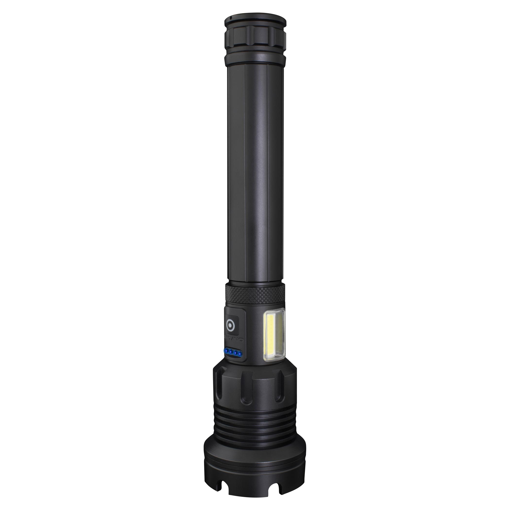 Svjetiljka je opremljena pomoćnom baterijom i COB bočnim svjetlom od 200 lm i crvenim svjetlom.