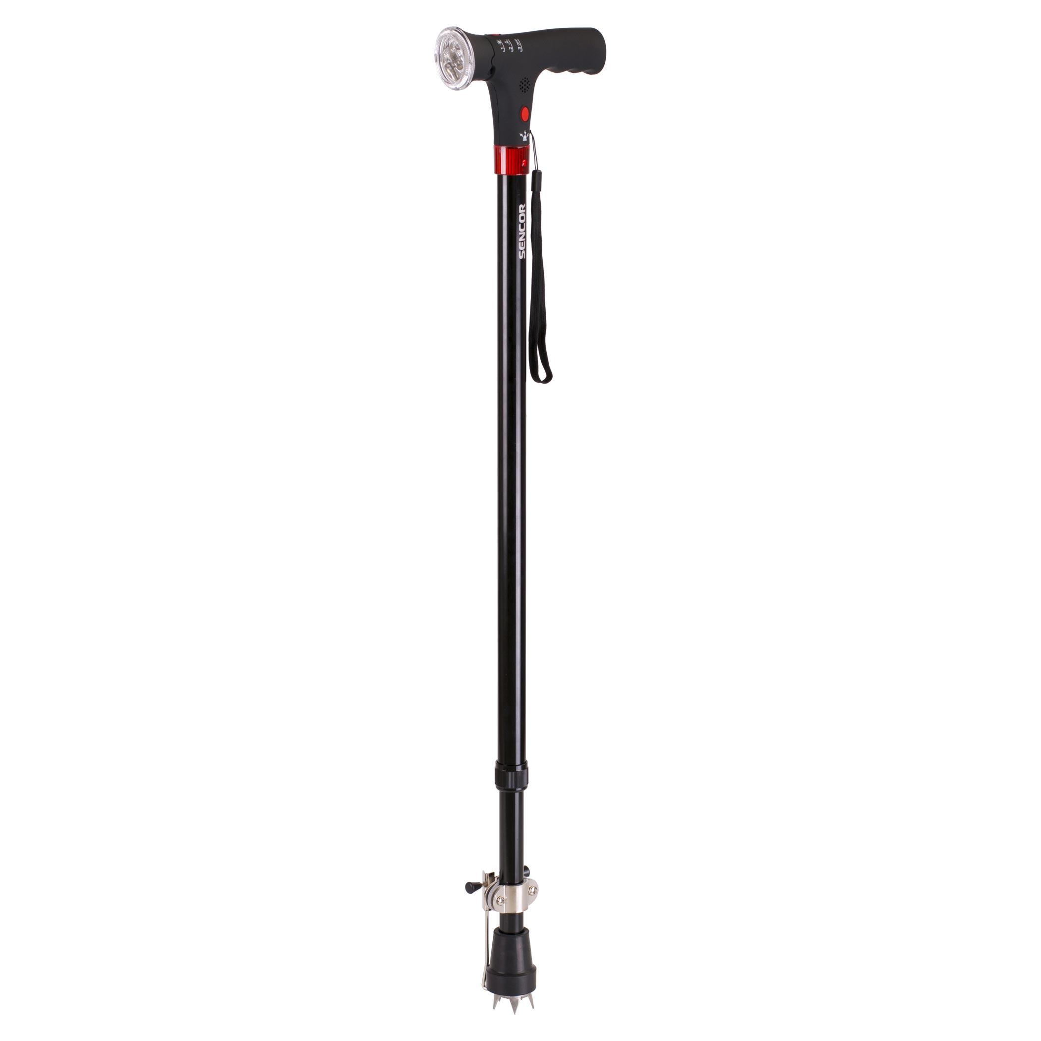 Vycházková hůl s LED svítilnou a alarmem
